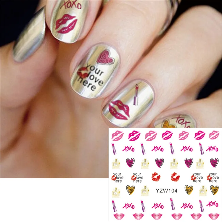 1pcs Pop Style Water Transfer Sticker Nail Art Slider Cool Girl Lips Rose High-heeled Shoes Cartoon DIY Nail Decal Decor Tool