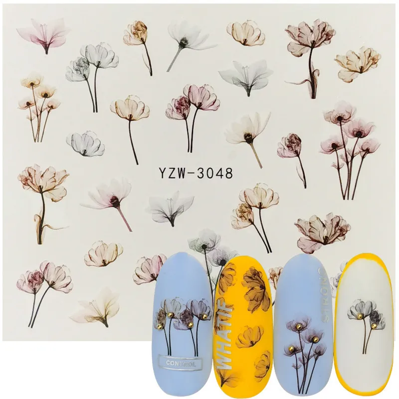 Nail Water Transfer Stickers Flower Leaves Nail Sticker Decals Blossom Colorful Slider Rose Water Full Wraps Nail Art Decoration