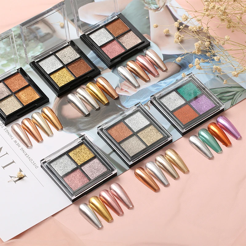 O.R.I Four Color Solid Mirror Nail Powder Holographic Decoration Manicure Tool Set Glitter Aurora Chrome Nail Pigment Powder